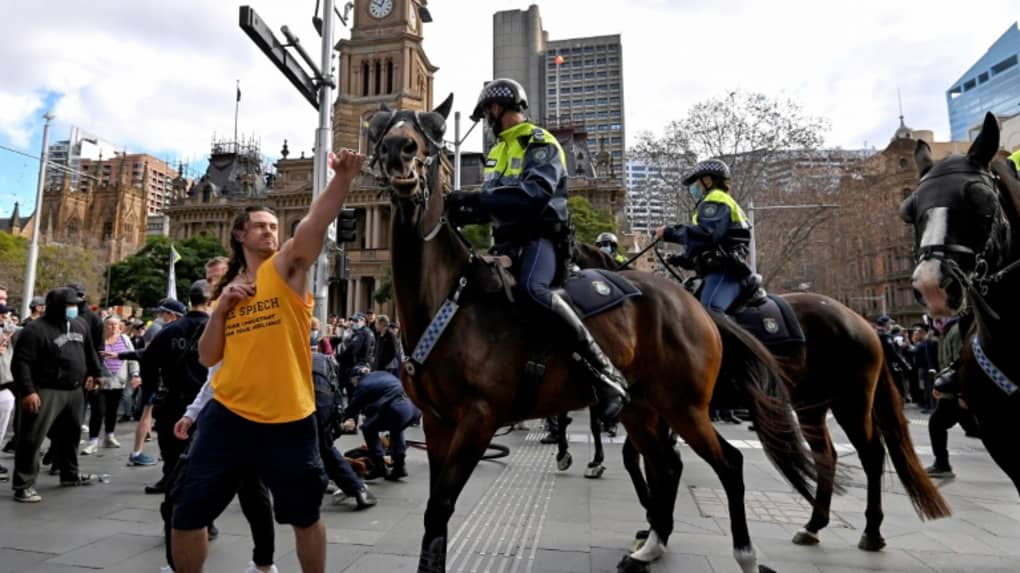 Des milliers de personnes manifestent à #Sydney et #Melbourne en Australie contre le confinement strict imposé dans les deux plus grandes villes du pays. Des affrontem*nts ont éclaté avec la police. Des dizaines de manifestants ont été arrêtés. #sydneyprotest #manifs24juillet pic.twitter.com/E79U3t3VnT