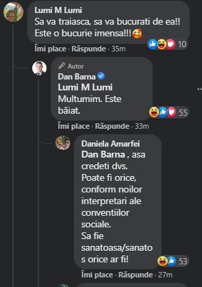 Mare bucurie în familia Barna, unde a venit pe lume un „băiat”, după cum îl identifică tatăl lui, altfel, un mare promotor al „diversității”. O comentatoare online l-a taxat prompt pe vicepremier, răspunzându-i: „Așa credeți d-voastră. Poate fi orice, conform noilor interpretări ale convențiilor sociale. Să fie sănătoasă/sănătos, orice ar fi!”.