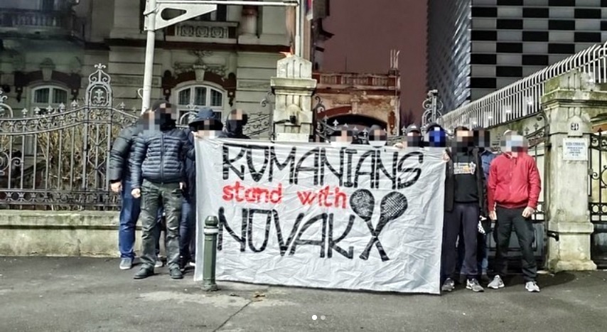 ROMÂNI PENTRU NOVAK. Un grup hotărât de români și-a arătat solidaritatea cu NO-VAK DJOKOVIC, la Ambasada Serbiei de la București. FOTOGRAFIA NOPȚII