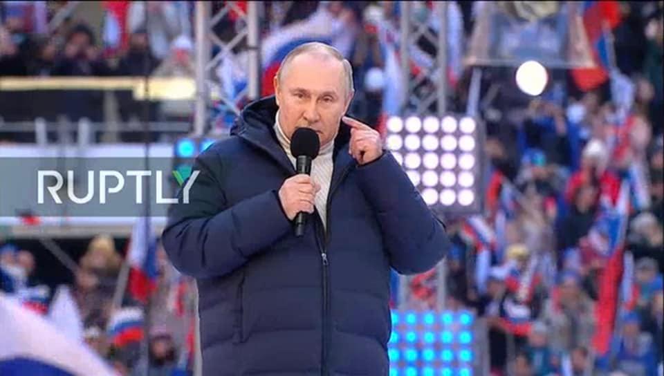 „Ucraina și Crimeea, Belarus și Moldova / Aceasta este țara mea / Sahalin și Kamceatka, munții Urali / Aceasta este țara mea / Teritoriul Krasnoiarsk, Siberia și regiunea Volga / Kazahstan și Caucaz, precum și țările baltice”, așa începe cântecul „Made in URSS”, interpretat vineri pe stadionul din Moscova de Oleg Gazmanov în fața lui Vladimir Putin și a zecilor de mii de ruși veniți să celebreze opt ani de la preluarea Crimeii.