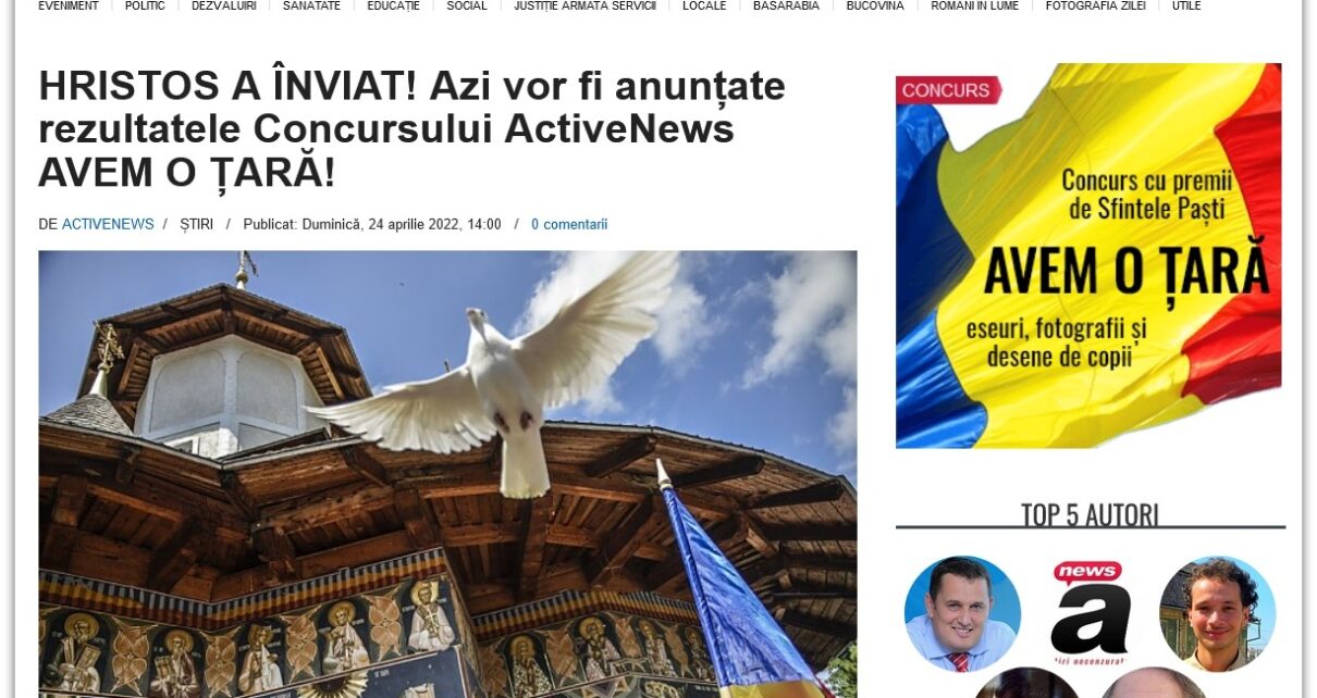 Nota Redacției: Îi mulțumim călduros cititoarei nostre fidele Enya – totodată publicistă ActiveNews – pentru aceste cuvinte pline de dragoste și optimism. Adevărul este că ar trebui să ne mai întărim redacția și departamentele tehnice și de marketing pentru a deveni mai vizibili pe plan național – în condițiile în care suntem „declasați” și atacați constant de BigTech (Google și Facebook) și organizațiile antiromânești cu ramificații externe – iar toate acestea costă. Poate, cu ajutorul Domnului și al cititorilor noștri, vom reuși să ne dezvoltăm în această direcție. Oricum, nu ne lăsăm! Doamne, ajută!