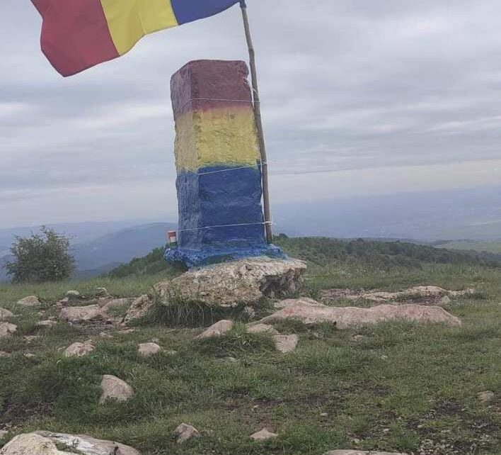 Borna de la Piatra Secuiului, vopsită în culorile naționale ale maghiarilor și unde în urmă cu o săptămână s-a fotografiat președinta Ungariei Katalin Novak, are acum culorile tricolorului românesc.