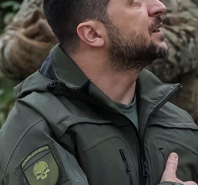 (sau nu) geaca pe care a purtat-o Zelenski avea pe mâneca dreaptă o emblemă cu