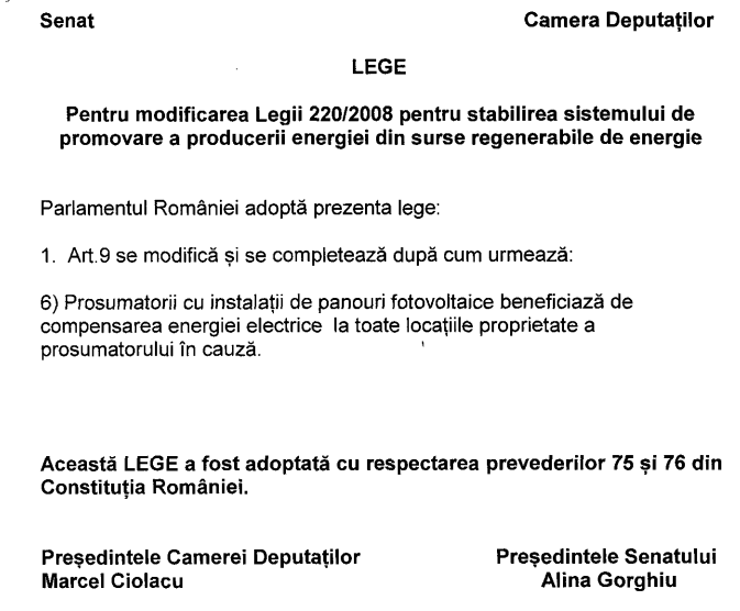 Cu alte cuvinte, actuala propunere legislativa reprezinta un impuls in plus pentru utilizarea instalatiilor de energie verde.